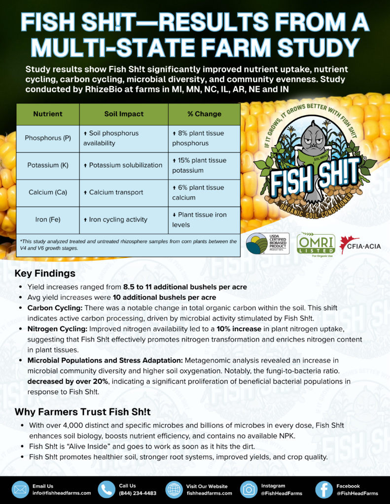 FISH SH!T HAS OVER 4,000 DISTINCT AND SPECIFIC MICROBES, MAKING IT THE MOST ROBUST BENEFICIAL INOCULANT ON THE MARKET.